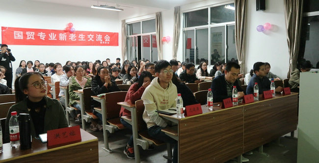 为密切国贸专业新老生之间的联系,加强新生对国际经济与贸易专业的认识,帮助新生明确大学生活定位,商学院国贸协会于10月16日晚在通灌校区明德楼220举办了2017级国贸专业新老生交流会。商学院副院长孙军老师,国贸新生班主任张家茂、姬徐田子老师,辅导员娄婷婷老师出席此次活动。本次活动邀请国贸141班团支书廖婷婷、原商学院学生会主席洪艺熔、国贸152班班长花俊潇作为主讲人,国贸全体新生参加了本次交流会。