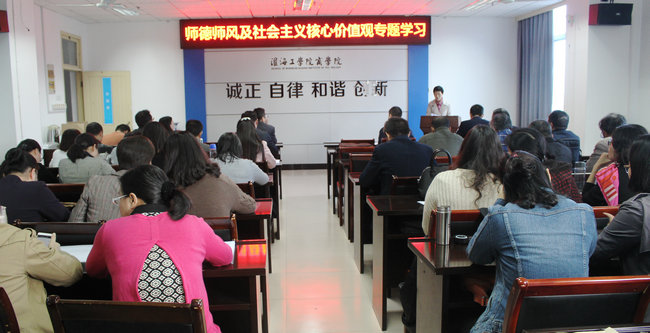 10月18日下午,商学院组织全体教职工政治理论学习,按照校党委《淮海工学院教职工2017年下半年理论学习安排意见》安排,商学院党委进行了“师德师风及社会主义核心价值观”专题学习。