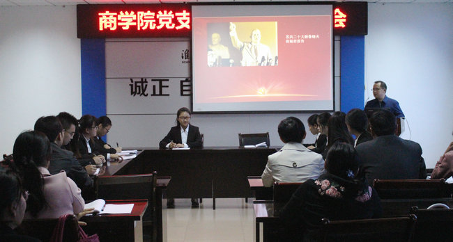 10月17日下午16:30分,商学院党支部学习讨论观摩会在主楼606会议室召开,本次学习讨论会旨在学习“7.26”讲话精神,迎接党的十九大召开。参加本次会议的有商学院党委书记杨天华、副书记张振松、商学院各支部书记、工商管理学生党支部全体党员。