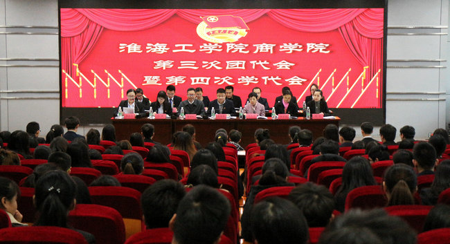 2017年11月19日下午14时,共青团淮海工学院商学院第三次团员代表大会暨第四次学生代表大会,在苍梧校区艺术楼报告厅顺利召开。校团委书记朱国军、商学院党委书记杨天华、商学院党委副书记张振松、海洋生命与水产学院团委副书记王静作为特邀嘉宾出席会议,商学院团学全体老师以及249名团学代表参加会议。