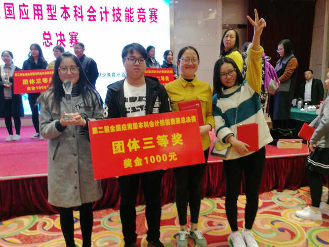 本次总决赛包括手工账务处理和电算化账务处理两个项目。由于学院的高度重视、指导老师的精心指导和参赛学生的刻苦训练,我校代表队不畏强手、沉着应战,经过一天紧张激烈的角逐,从51支参赛队伍中脱颖而出,获得了团体三等奖的骄人成绩。手工账务处理比赛项目中,我校队员杨奕豪获得个人一等奖,徐冬云获得个人二等奖,冯敏捷获得个人三等奖;电算化账务处理比赛项目中,我校队员冯敏捷、徐冬云、杨奕豪分别获得个人三等奖;戴华江、易爱军老师获优秀指导老师三等奖。