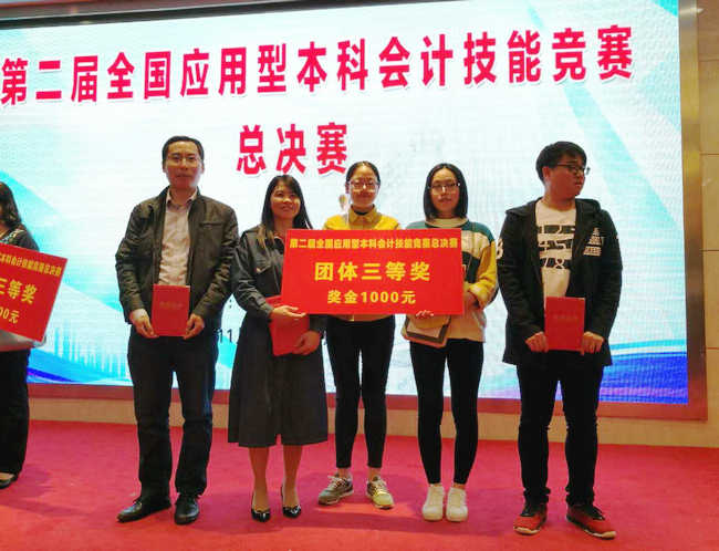 近日,由中国高等教育学会高等财经教育分会主办、江苏理工学院承办的第二届全国应用型本科会计技能大赛总决赛在常州落下帷幕。来自全国24个省、直辖市、自治区的51支代表队参与了角逐。由商学院组建的我校代表队在戴华江、易爱军、骆阳、邹纪元四位指导老师的带领下,亮剑群雄,获得团体三等奖及个人一等奖1项、二等奖1项、三等奖4项。