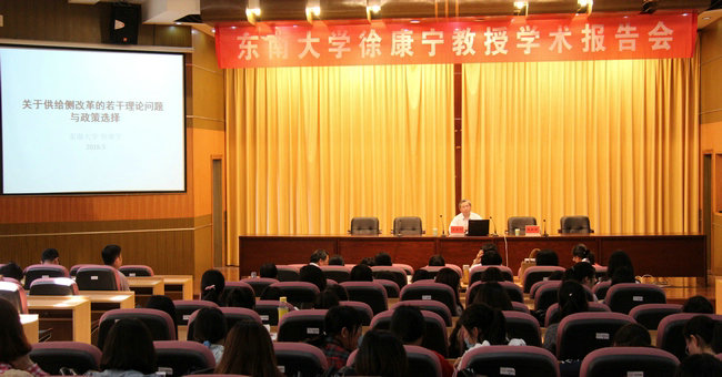 在受聘仪式前,徐康宁教授为商学院部分师生作了一场题为《供给侧结构性改革的若干理论问题与政策选择》的学术报告。