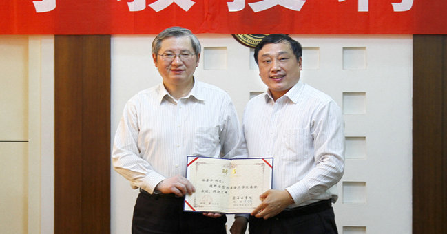 5月17日下午,东南大学徐康宁教授受聘为我校兼职教授的仪式在行政楼二楼会议室举行。校领导史金飞、许兴友出席聘任仪式,校长史金飞为徐康宁教授颁发了聘书。