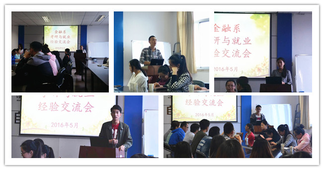 为引导学生进一步明确奋斗目标、合理规划职业生涯,促进学风建设,5月21日下午由金融系主办金融协会承办的金融系考研与就业经验交流会于本部主楼606会议室举行。金融系全体教师和金融学系学生参加了此次交流会。本次交流会邀请了金融121和122班的陈雅洁、于浩东、刘燃燃、张政、周璐、朱馨培、毛强强等7位同学与大家分享考研与就业经验。会议由金融学系支部书记黄萍老师主持。