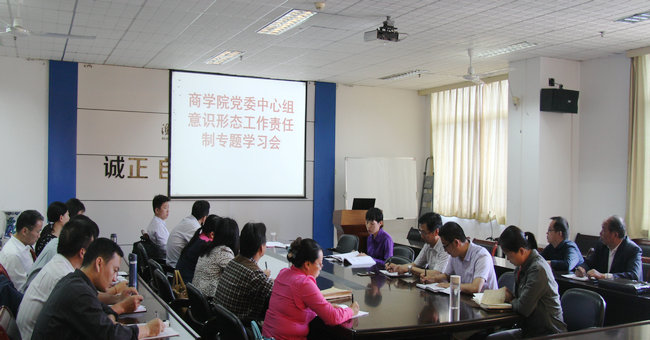 5月26日下午,商学院组织党委中心组第三次理论学习,学习主题为“意识形态工作责任制”。会议由商学院党委书记杨天华主持,商学院党委委员、领导班子成员、系主任、党支部书记参加会议。