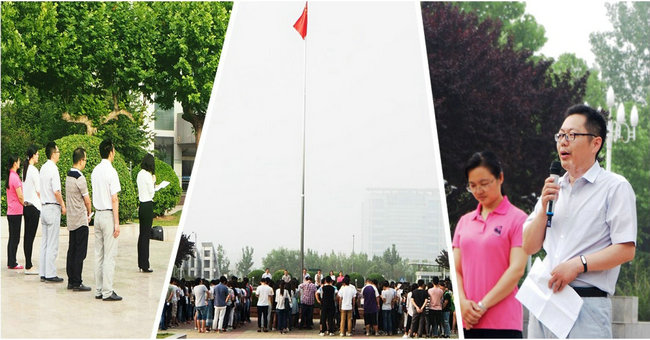 2016年6月13日上午6点30分,商学院在校主楼广场举行“加强学风建设,共创和谐校园”主题升旗仪式。商学院党政领导、全体辅导员以及2013级、2014级全体同学参加了本次升旗仪式。