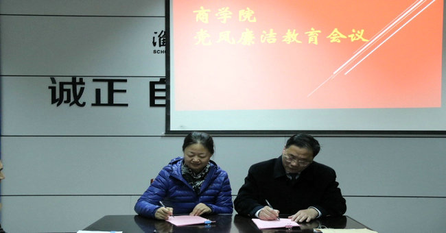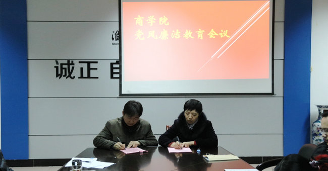 在学院党风廉洁教育大会上,杨天华书记传达了校党风廉政建设大会的精神,带领学院领导班子成员、党委委员、支部书记、系主任、科级干部认真学习了赵炳起书记、史顺良副书记在校党风廉政建设大会上的讲话。接着,学院领导按照工作分工与分管系部、科室负责同志签订了党风廉洁责任状。