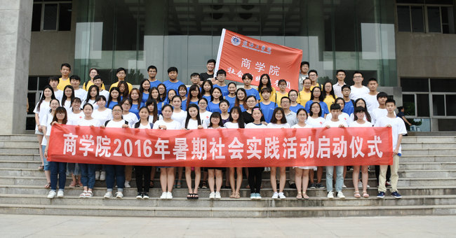 6月30日下午5时,商学院2016年大学生暑期社会实践出征仪式于本部主楼102顺利举行。出席出征仪式的有商学院党委书记杨天华、商学院团委副书记刘勇、辅导员苏成兄、李淑华、叶舟及商学院九支暑期社会实践团队成员。仪式由商学院团委学生副书记高洁主持。