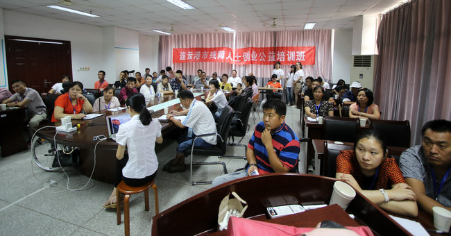 此次培训有来自连云港各区的残障人士43人。培训老师是来自阿里巴巴连云港分公司的张秀乔经理以及淮海工学院工商管理系讲师贝金兰,讲授了关于“互联网+”大环境下,电子商务的发展历史以及创业型企业在发展规划中的影响因素,深入且全面地介绍了关于电商平台项目的包装、推广以及区域发展新模式、企业税收等方面的问题。