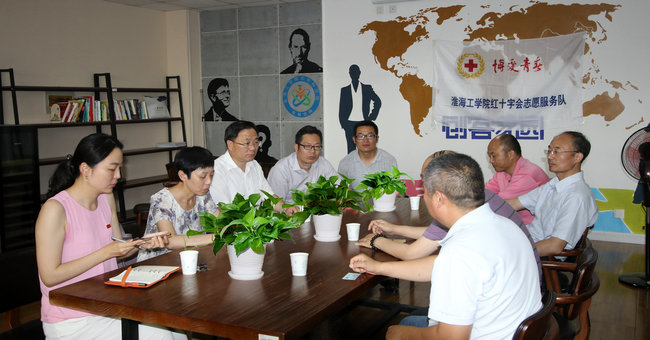 7月12日,江苏省红十字会组织宣传部部长江建宁到我校通灌校区视察淮海工学院商学院暑期社会实践“青春折翼需精彩,帮扶创业筑飞翔”志愿服务团为残疾人创办的公益创业培训班。来自连云港市红十字会、连云港市残疾人联合会、连云港市人力资源和社会保障局的领导及校团委副书记王琰、商学院党委书记杨天华、院长宣昌勇、副书记张振松参加了此次视察。