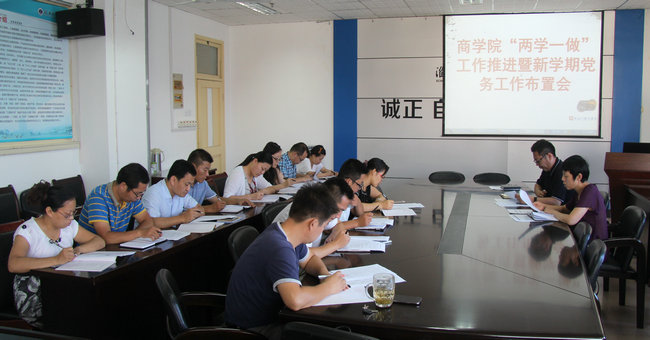9月8日下午,商学院在主楼606室召开“两学一做”学习教育推进暨新学期党务工作布置会, 学院党委书记杨天华主持会议,党委副书记张振松出席会议,全体党支部书记参加会议。