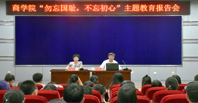 为纪念“九 一八”事变85周年,弘扬爱国主义精神,大力培育和践行社会主义核心价值观,9月18日晚7点,商学院在艺术楼报告厅举行“勿忘国耻,不忘初心”主题教育报告会。报告会邀请法学院刘平昌教授作主题报告,商学院党委书记杨天华、团委副书记刘勇及商学院学生党员、团学骨干聆听了报告。