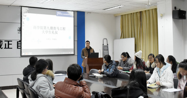 为推进校园精神文明建设,普及文明礼仪知识,提升学生文明素养,2016年12月8日,商学院在主楼606会议室举办“大学生文明礼仪”知识讲座,全体青马班学员及各团学组织主要学生干部参加了此次培训。
