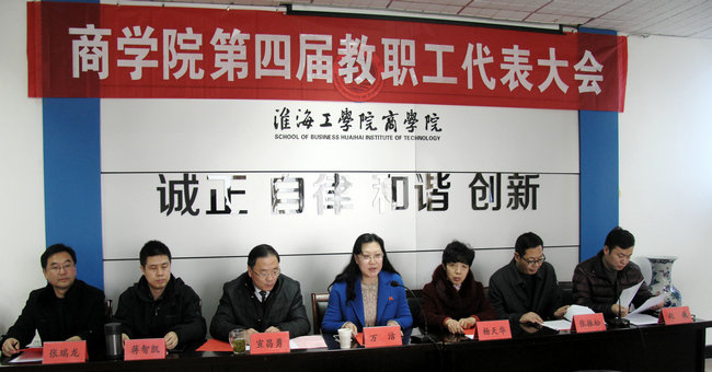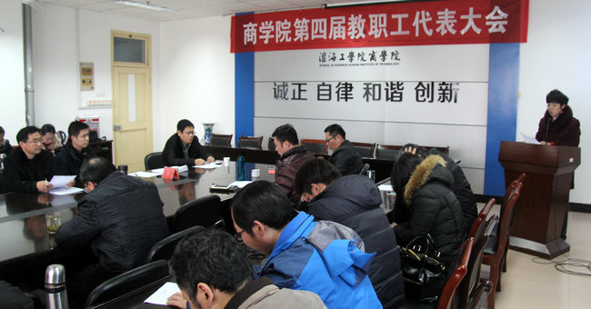 12月20日下午,商学院第四届教职工代表大会在N606会议室召开,校工会主席万洁、组织部副部长汪守建、商学院49名教职工代表参加大会,会议由商学院副院长赵巍主持。