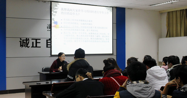 为了进一步加强学生干部队伍建设,提高学生干部的综合素质和工作能力,更好地开展学院学生工作,商学院于2016年12月1日在苍梧校区主楼606会议室举行学生干部基本业务知识培训,参加本次培训的有全体青马班学员及各团学组织主要学生干部。