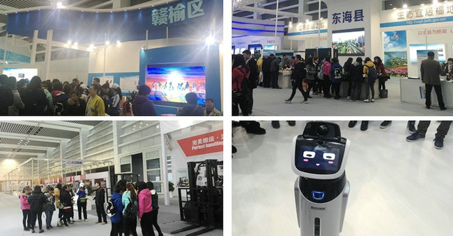 师生们刚一进入1号馆区,映入眼帘的是“连云港港”这几个宏伟的大字,连云港港是“一带一路”的陆海交汇枢纽,同时也是新亚欧大陆桥东端起点。在此展区还有一个名叫“旺宝”的机器人,它不仅为大家解答了与连博会有关的专业知识,还与学生们聊天合影,引起一阵欢笑声。接下来参观了连云港的主要港区——徐圩新区和赣榆港区,“徐圩新区是国务院正式批准在连云港市设立国家东中西区域合作示范区的先导区,重点发展石化、精品钢、装备制造、节能环保、现代港口物流等五大主导产业;而赣榆港区是以为腹地经济发展和后方临港工业服务的综合性港区,以干散货、液体散货和散杂货运输为主。在1号馆区内,集中宣传连云港多式联运、连新亚、连新欧国际班列等独特优势和优惠政策。”参展负责员向同学们如是介绍道。