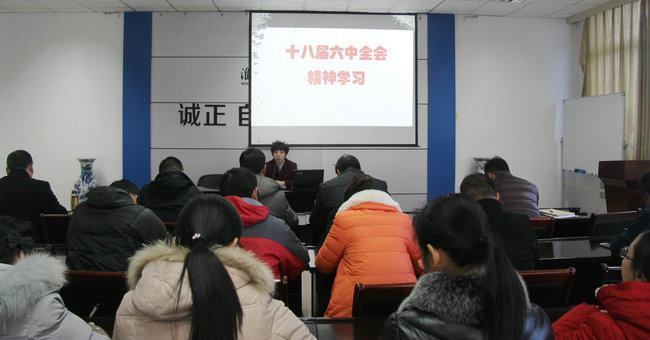 11月22日下午,商学院党委中心组学习贯彻十八届六中全会精神专题学习会在商学院会议室召开。全体院领导,党委委员、党支部书记等参加会议,会议由学院党委书记杨天华主持。