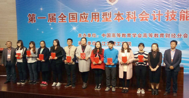 11月5日,由中国高等教育学会高等财经教育分会主办,江苏理工学院、厦门网中网软件有限公司、厦门网中网财务技术有限公司、畅捷通信息技术股份有限公司联合承办的 “第一届全国应用型本科会计技能竞赛”在江苏常州举行。来自全国24个省、市、自治区的66所本科院校的198名选手参加了比赛。我院会计系老师戴华江、易爱军带领学生姬青青、冯敏捷、张鼎升组队参赛,经过激烈角逐,获得二等奖两项、三等奖三项。
