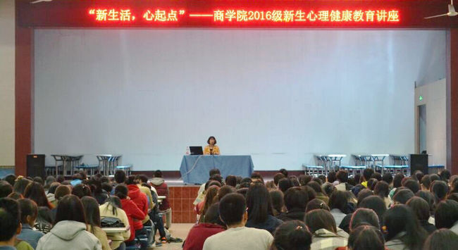 10月24日晚6点30分,在通灌校区前程餐厅,商学院为2016级全体新生开展了主题为“新生活,心起点”的心理健康教育专题讲座。讲座由我校党委学生工作处、心理咨询中心主任解如华老师主讲,旨在加强新生对个人心理状态的重视,并引导同学们善于运用科学有效的方式寻求心理辅导,解决心理问题。