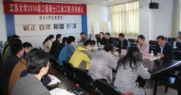 4月18日上午,江苏大学2014级工程硕士(工业工程)班开学典礼在商学院会议室隆重举行。来自中复连众集团的21名新学员参加典礼,江苏大学马克思主义学院党委副书记、副院长王祥、中复连众集团副总经理王彤兵、集团人力资源部经理杨懿忠、商学院党委书记杨天华、商学院院长宣昌勇出席典礼。王祥副书记、王彤兵副总经理、宣昌勇院长分别代表办学单位、学员单位和项目承办单位在开学典礼上致辞,学员代表朱维胜班长代表学员讲话,典礼仪式结束后全体与会人员合影留念。