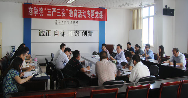 9月15日下午2:30,商学院在学院会议室举行了“三严三实”专题教育党课。商学院宣昌勇院长主讲第二次专题党课,学院领导班子成员、各系主任、党支部书记、科以上干部以及教工、学生党员代表20多人参会。