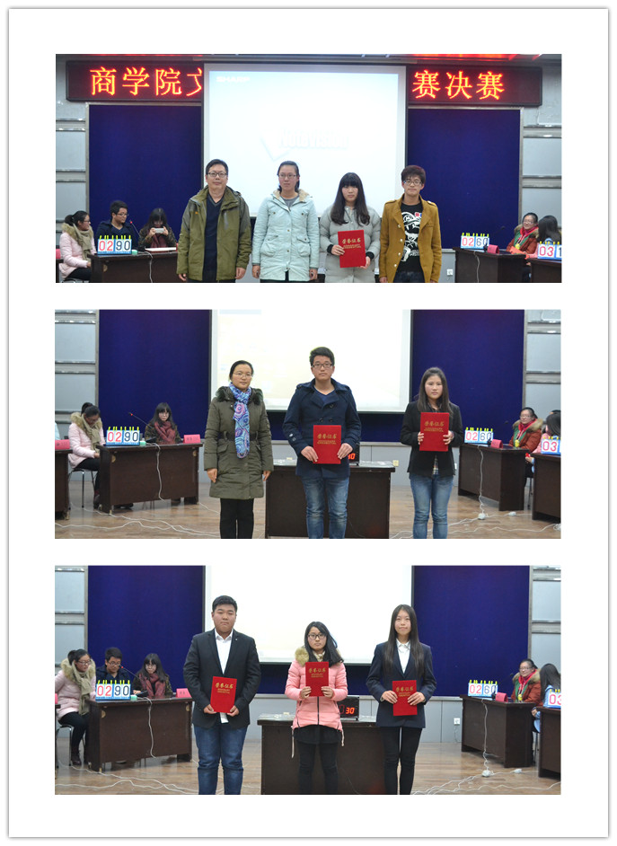 为了扎实推进大学生文明行为教育,让学生养成“讲卫生、知礼仪、守信用”的良好品行,营造健康文明的校园学习生活环境,由商学院学生会主办的“大学生校园文明行为知识竞赛”决赛于12月7日晚7点在苍梧校区艺术楼报告厅成功举行。竞赛评委由商学院副书记、副院长张振松、学工办主任徐建芬、商学院团委副书记刘勇、商学院辅导员娄婷婷、叶舟担任,参赛班级作为学生代表共同观看了本次活动。