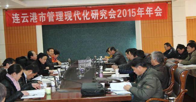 2015年1月8日,连云港市管理现代化研究会2015年年会暨学术交流会在淮海工学院文渊楼会议室隆重召开。来自质监局、万联能源集团及其它企业的代表、研究会会员等四十多人出席了会议,会议由研究会常务副理事长陈国华教授主持。