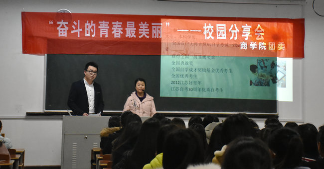 “青春筑梦·励志喝彩--奋斗的青春最美丽”专题分享会活动是商学院团委组织的针对女生开展的专项主题教育活动,通过邀请校内外的青年精英现身说法、分享故事,以榜样示范引领的形式带动广大女同学勇于追梦、敢于拼搏,学会规划自己在大学的青春生活,因为精彩的大学生活需要自己努力奋斗来实现,只有奋斗中的青春才是最美丽、最无悔的。