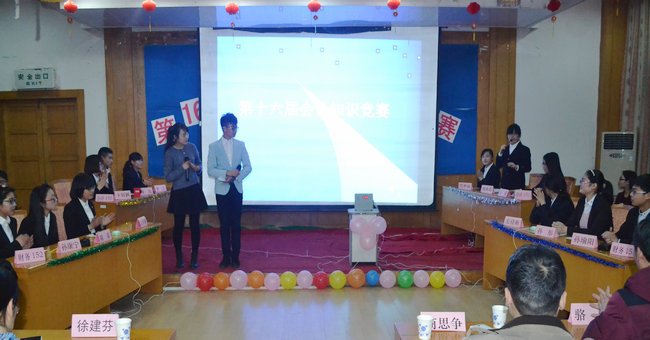 3月25日晚7点30分,商学院在通灌校区诚意楼报告厅成功举办第十六届会计知识竞赛。会计系商思争、骆阳、戴华江、易爱军、陈建芸,财务系王洪海、丁荣清、蔡阳、高玲,学工办主任徐建芬等老师担任评委,会计、财务专业200余学生现场观战。