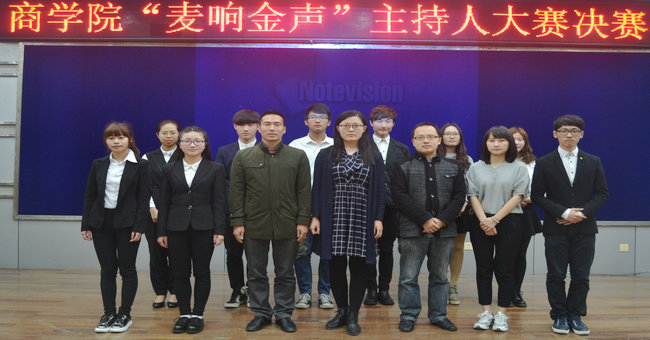 为了丰富校园文化生活,展示商学院学子风采;为了给每一个拥有播音主持梦想的同学提供一个展示自我的舞台;更为了培养一批优秀的主持人才,4月8日晚,商学院“麦响金声”主持人大赛决赛在艺术楼报告厅拉开帷幕。本次大赛邀请淮海之声广播台台长王浩、商学院辅导员李淑华、叶舟、苏成兄老师及上届主持人大赛冠军李竞超同学担任评委。