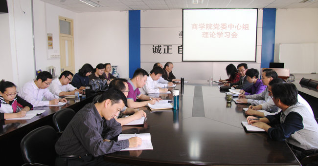 5月6日下午,商学院组织党委中心组第二次理论学习,并结合“两学一做”教育进行了近期工作布置。会议由商学院党委书记杨天华主持,商学院党委委员、领导班子成员、系主任、党支部书记参加会议。