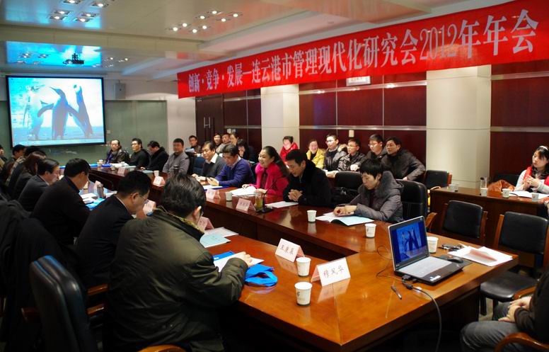 2013年1月19日,挂靠在淮海工学院商学院的连云港市管理现代化研究会2012年年会在连云港市政府会议室隆重召开,年会主题是“创新、竞争、发展”。连云港市科协副主席葛雄灿、连云港市经信委副主任冯燕芹、研究会理事及会员代表等近六十人出席了会议。会议增选了副理事长,举行了专题报告和学术交流。