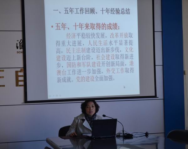 为深入学习宣传贯彻党的十八大精神,全面理解十八大报告的精神实质和深刻内涵,3月27日下午,商学院邀请马克思主义学院院长杨雪英教授为全体教职工做“全面建成小康社会的重要纲领”为主题的十八大精神学习与辅导报告。