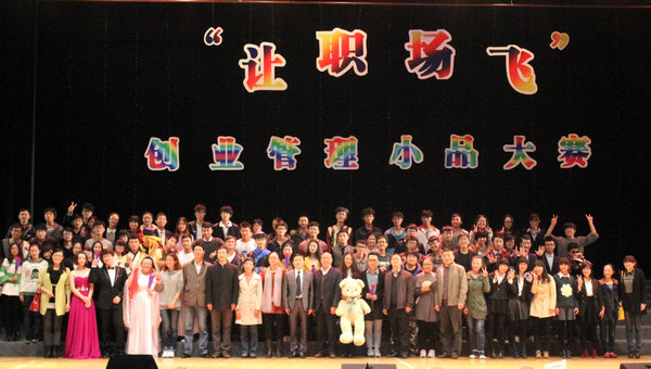 参赛的9个作品别出心裁,紧扣“让职场飞和创业管理”这一核心主题,参赛学生的精彩表演赢得了评委老师和观众的阵阵喝彩。据悉,参赛小品完全以学生为主导,采用了自编、自导、自演的形式,以职场与创业为话题,契合当今现实的职场与商场环境,旨在向学生们展示未来职场和创业的各种问题,进而加深大学生对社会的了解和体悟。比赛中,鲜果队的《鲜果传奇》发人深思,其诠释的大学生为追逐自身创业梦想,坚持不懈努力拼搏的精神,传播了社会正能量,使得现场掌声不断。而《求职日记》等小品强调了大学生应有诚信、有道德、有礼仪,引起了广大师生共鸣。