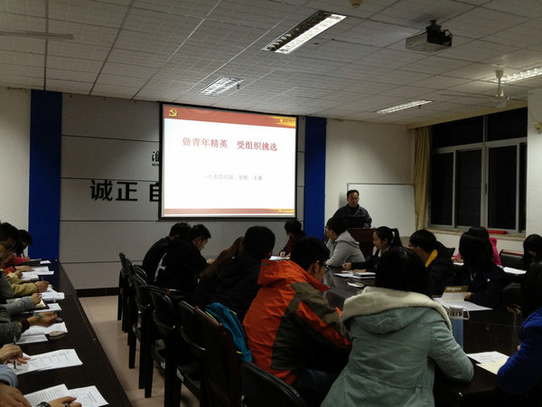 首先,王波老师开门见山地提出了“青年精英的政治选择”这一问题,肯定了做出正确政治选择的必要性。接着,他围绕“怎样客观认识发展党员的形势、怎样正确理解发展党员的标准和怎样积极面对发展党员的考察”三个方面进行了详细的论述。在王波老师的讲解中,可以认识到目前发展党员的形势逐渐明朗,从中央到省市,再到学校,党员的发展受到更严峻的挑战,即“提质,限量”。王波老师强调如今发展党员,要求党员学会自我批评,摒弃多元功利性,保持入党前的积极性,提高入党后的先进性。所以,青年精英不仅要在组织上入党,更要在思想上入党。