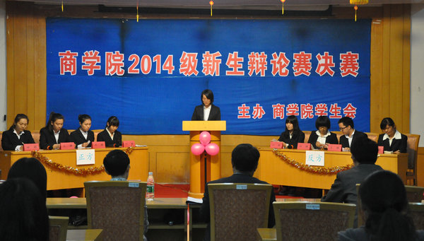 2014年10月20日晚19点45分,历时24天的商学院新生辩论赛终于在通灌校区诚意楼报告厅拉开了决赛的帷幕,本次决赛的辩题为”大学生兼职利大于弊还是弊大于利”,正方是会计141班代表队,反方是国贸142班代表队。校团委副书记赵求勇、商学院党委书记杨天华及各专业辅导员出席了本次辩论赛。本次比赛还荣幸的邀请到国家二级作家、市历届大学生辩论赛评委、校学术期刊社徐习军老师担任点评嘉宾。