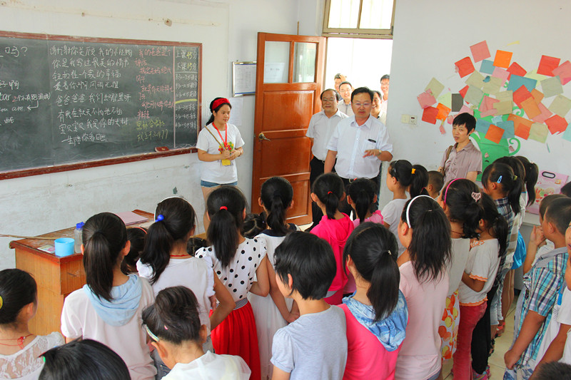校领导一行直接到课堂察看了志愿者给三十多位小学生的上课情况,并与师生们进行亲切的交谈,了解大家的生活和工作情况,关切询问了师生们在实践活动中遇到的困难和问题;校领导还认真查看了实践队员们的住宿、用餐环境,同时为实践队员们送去了水果等慰问品。带队老师就实践分队的工作安排、实践过程和成果等工作向学校领导作了汇报,实践队员们也踊跃发言,畅谈实践中的体会和收获。