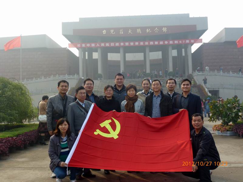 10月27日一大早,淮海工学院商学院教工三支部和一支部党员、入党积极分子等共20余人,驱车前往鲁南革命教育圣地——台儿庄,开展以“追忆先烈、提升自我、创先争优、喜迎十八大”为主题的最佳党日活动。