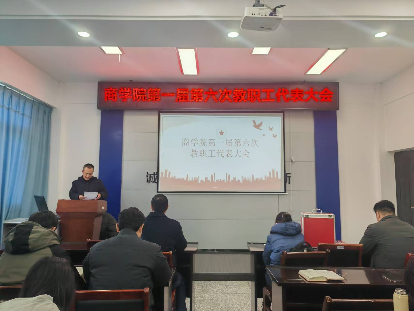 2024年12月27日,商学院第一届第六次教职工代表大会、工会会员代表大会在文渊北楼357胜利召开。学院全体党委委员、教代会代表及工会会员参加此次会议,院党委书记万金店主持会议。