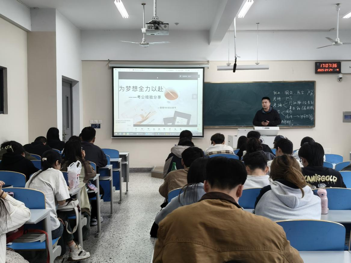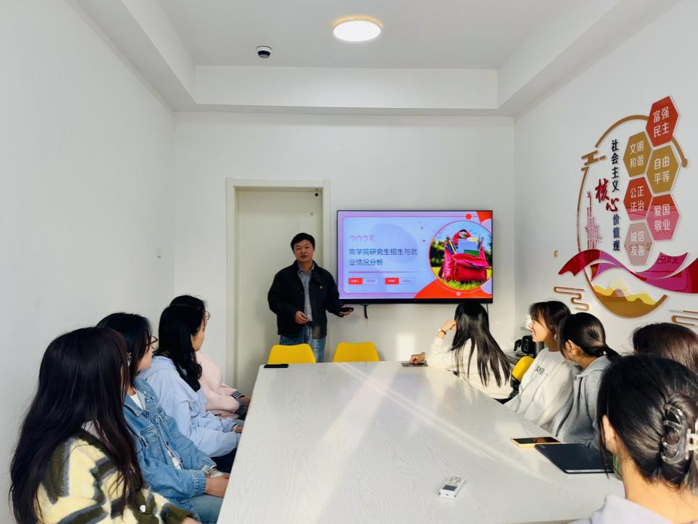 工商管理教工党支部马东升组织开展考公考研交流辅导,邀请毕业生管理191班长蒙琴结合自身考公经历讲述如何职业规划、建立持续的学习动力,拟录取研究生的管理1211朱彦如从自我能力评估、院校选择、备考技巧等方面分享。研究生党支部支部书记周智超向有意愿报考本院国际商务等专业研究生的同学们介绍了学院近三年招生与就业形势,帮助大家分析学业和就业具体情况,研究生党员陶音琦则分享了自己的备考经验、竞赛经历和论文撰写技巧,鼓励同学们认真完成学业,积极报考。