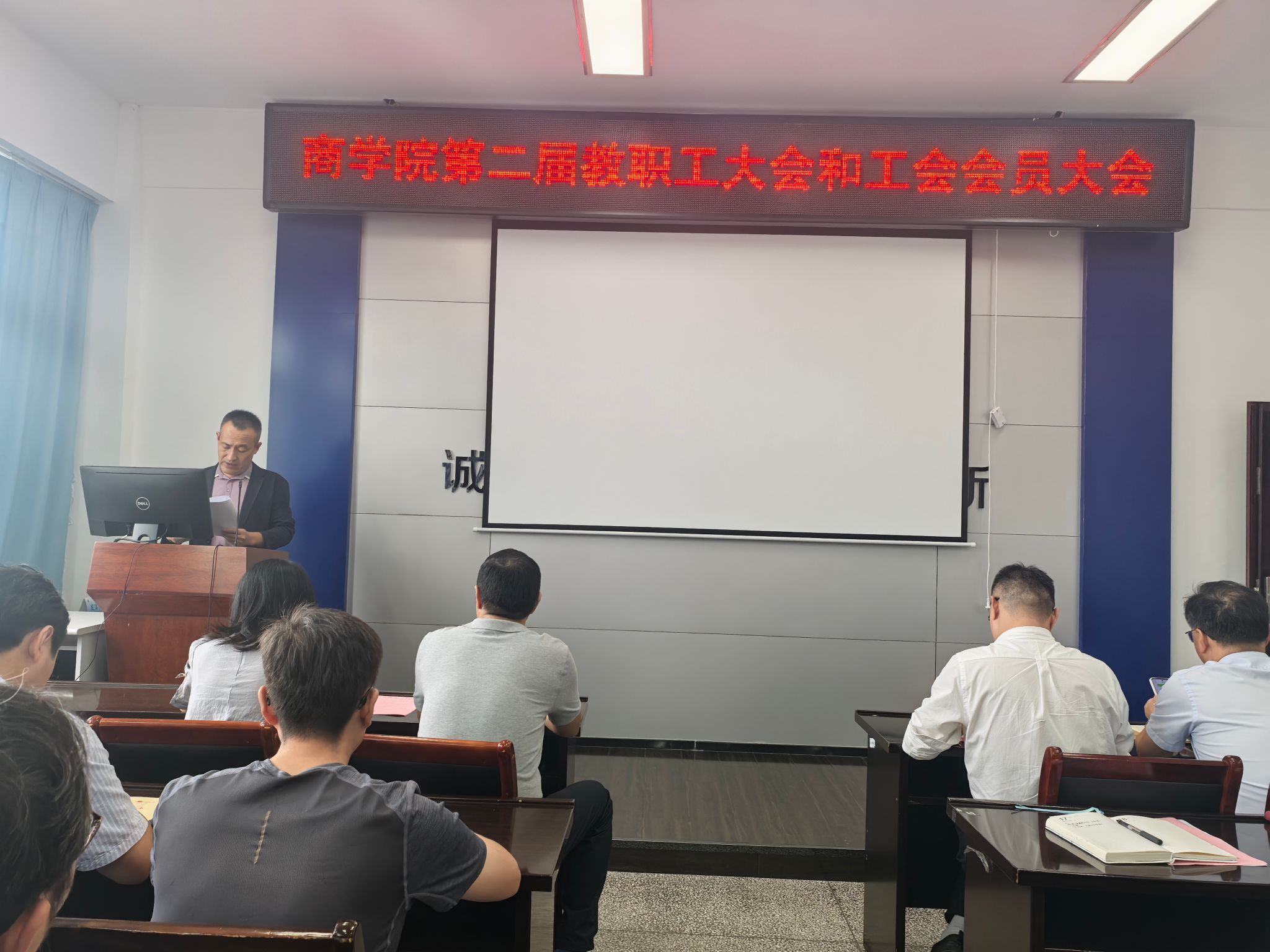 9月17日,江苏海洋大学商学院第二届教职工大会和工会会员大会在学院会议室隆重召开。大会以“凝心聚力谋发展,锐意进取谱新篇”为主题,全面总结学院过往工作,明确未来发展方向,为推动学院高质量发展凝聚共识、汇聚力量。学院党委副书记王智金主持会议,全院教职工及工会会员参加,校工会主席王晶莅临指导。